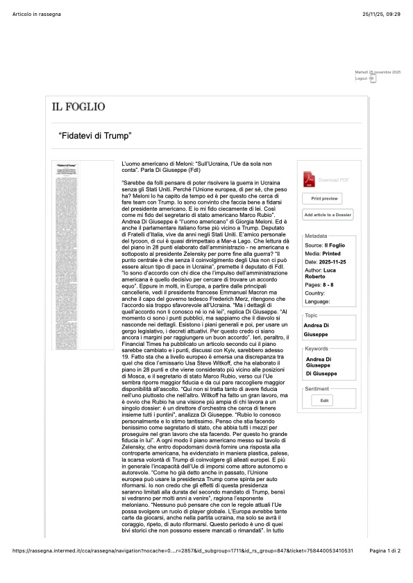 👉 The full interview on today’s edition of Il Foglio and on the website: https://andreadigiuseppe.com/di-giuseppe-fdi-sullucraina-ci-fidiamo-di-trump-lue-da-sola-non-conta/