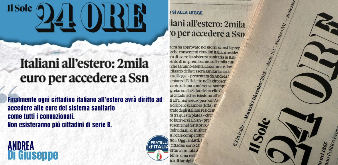 Gennaio 10, 2026 ADG - tech No Comments Italiani nel Mondo, Political, Sanità #fdi, #italianiall'estero, Politica, sanita'