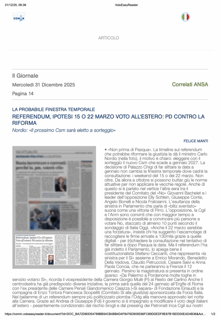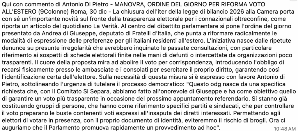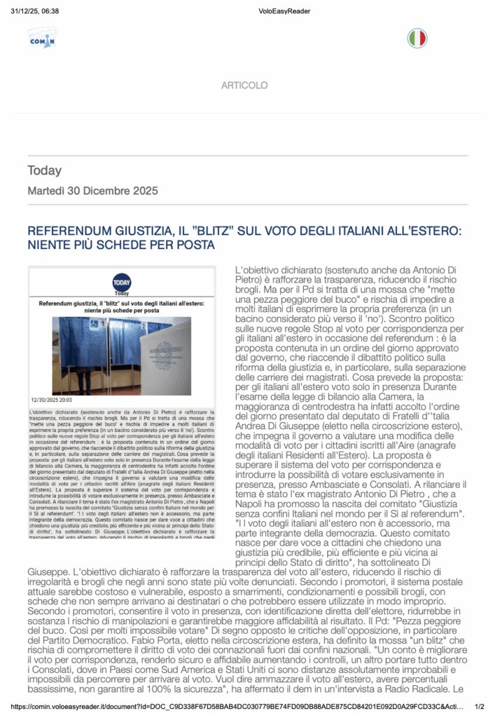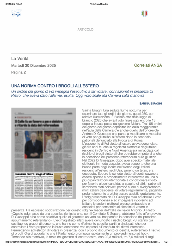 Dicembre 27, 2025 ADG - tech No Comments Political, Rassegna Stampa #italianiall'estero, #pdl, #rassegnastampa, #voto, Politica